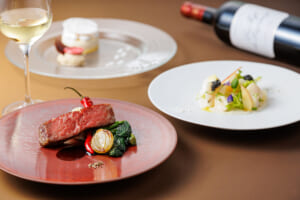 平安神宮会館でしか見られない美しくライトアップされた庭園を眺めながら、ピアノとウッドベースの生演奏と共に本格フレンチをご堪能ください。