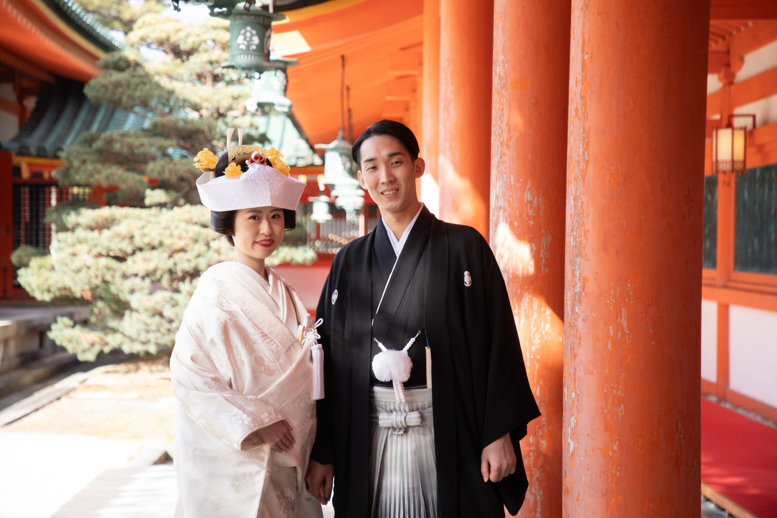 静けさの中に凛とした空気が漂う神前式。伝統を大切にした儀式の一つひとつが、ゆるやかに心へと響いていきます。神聖な空間に身を置くことで、おふたりの想いはより深く結びつき、これからの歩みへの願いが丁寧に紡がれていきました。大切なゲストの皆様に見守られながら交わされる誓いは、言葉以上のあたたかさを宿し、その場にいるすべての方の心にやさしく広がっていくようなお時間となりました。おふたりの出会いを見守ってきた京都の地で、伝統的な様式美に包まれながら執り行われる儀式は、これからの未来を明るく照らす、かけがえのないひとときとなりました。