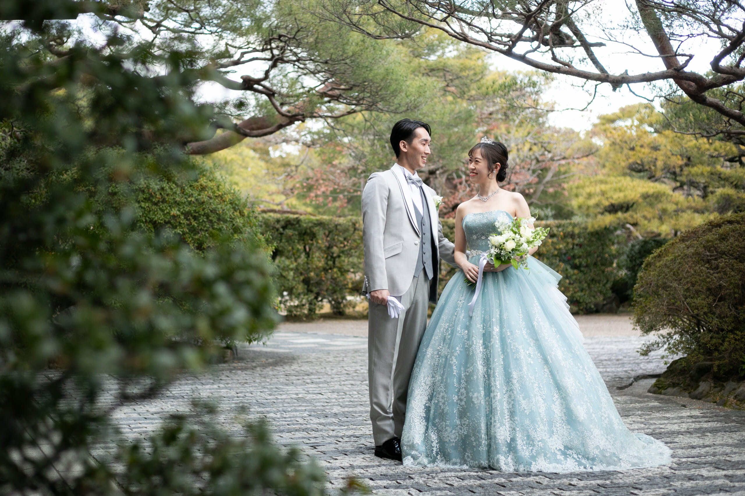大学時代、同じ学び舎と部活動を通して自然と心を通わせていかれたおふたり。互いの価値観に触れながら育まれてきた絆は、穏やかでありながらも活気に満ち、日々を彩る大切な存在として深まっていきました。おふたりが結婚式を望まれた背景には、これまで支えてくださった大切な皆様へ、感謝の気持ちを丁寧にお伝えしたいという想いがありました。出会いの地でもある京都で、今日まで支えてくださった方々へ、言葉では尽くせない感謝の意をお伝えすることです。「皆様の心が跳ねるような、心躍る驚きと楽しさを届けたい」。その一途な想いが、この日を創り上げる原動力となりました。訪れるすべての方の心が弾み、笑顔が広がる時間を届けたい。そんな前向きで明るい想いが、この特別な一日を形づくっていきました。