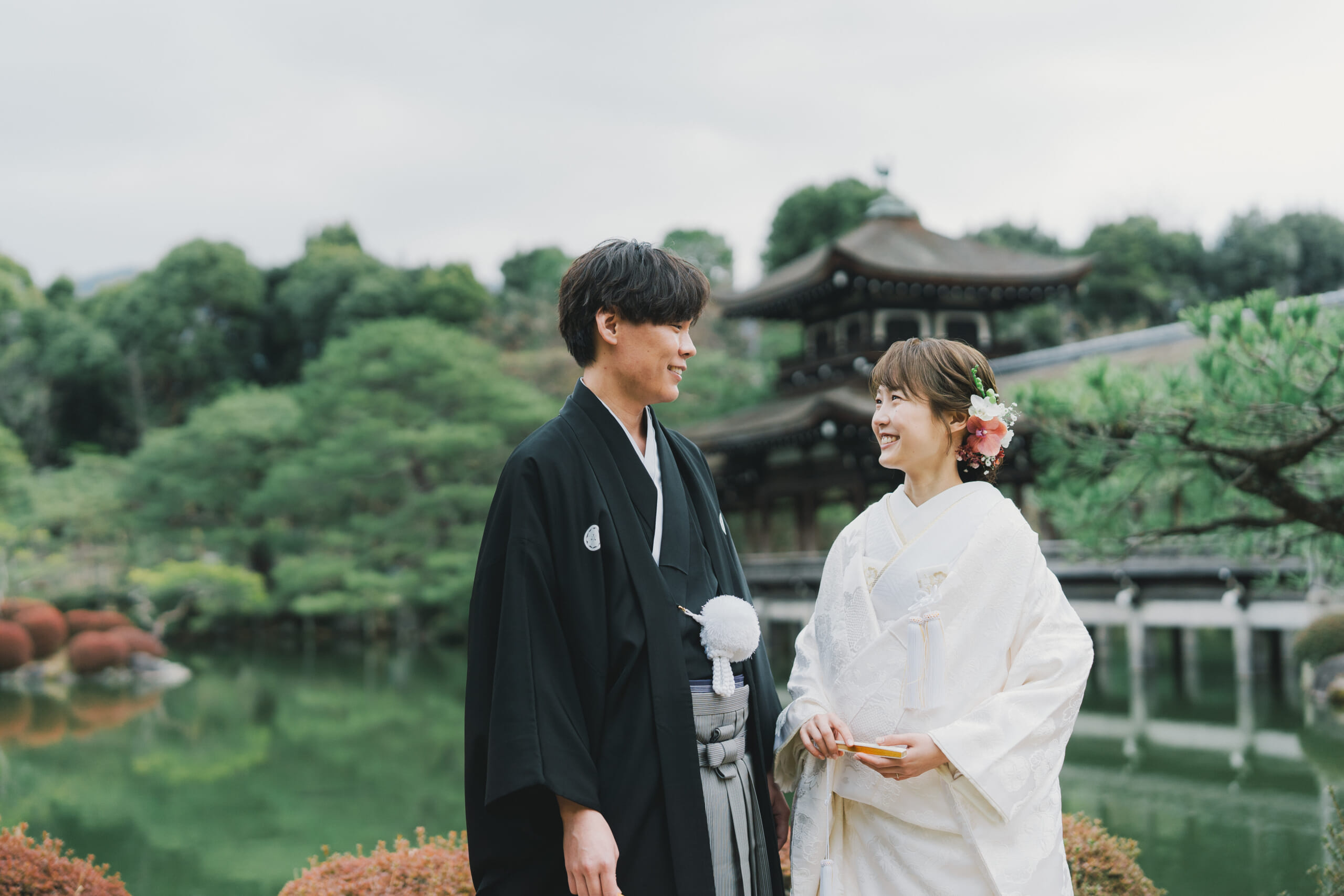 遠く離れた場所で日々を重ねながら、未来へのご準備を進めてこられたおふたり。お互いの暮らしを大切にしながら歩まれる中で、京都の会場と画面越しにつながる「オンラインお打合せ」は、心をやさしく結ぶかけがえのないひとときとなりました。直接お越しいただくことが難しい時期においても、一つひとつ丁寧に想いを紡がれながら、ご準備を進めてこられたおふたり。その積み重ねが、安心と信頼へとつながり、大切な一日を迎える場所として平安神宮をお選びいただきました。離れていても感じられるぬくもりと、心が通い合うつながり。おふたりらしい穏やかな歩みが、特別な一日へと美しく結ばれていきました。
