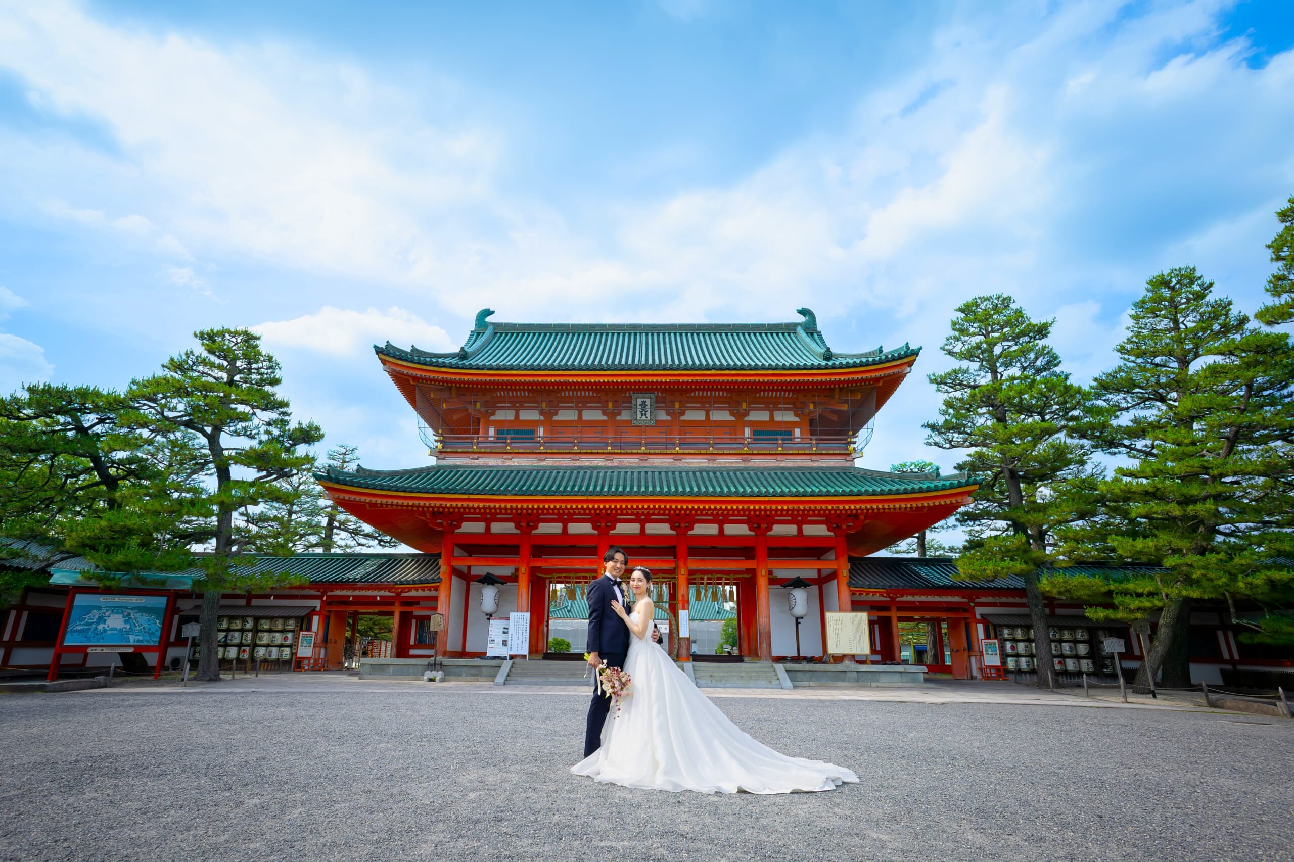 丁寧で穏やかな佇まいが印象的な新郎様と、決断力があり、ご友人やご家族とのご縁を何よりも大切にされている新婦様。おふたりは、大切なゲストお一人お一人へ感謝の気持ちをお伝えする場として、平安神宮での結婚式をお選びになりました。