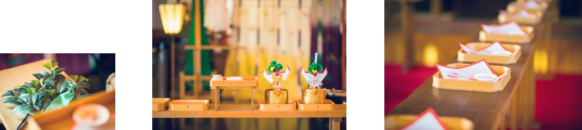 - 神札・神棚・お守・三献の儀盃・誓詞・撤饌の一式をお授けいたします。