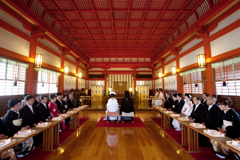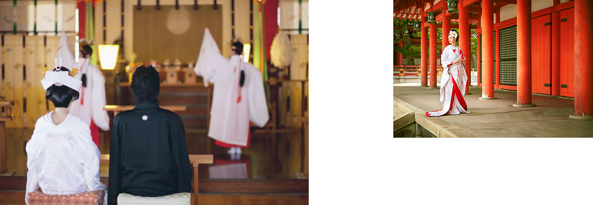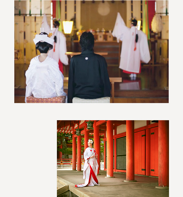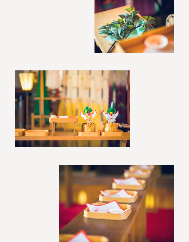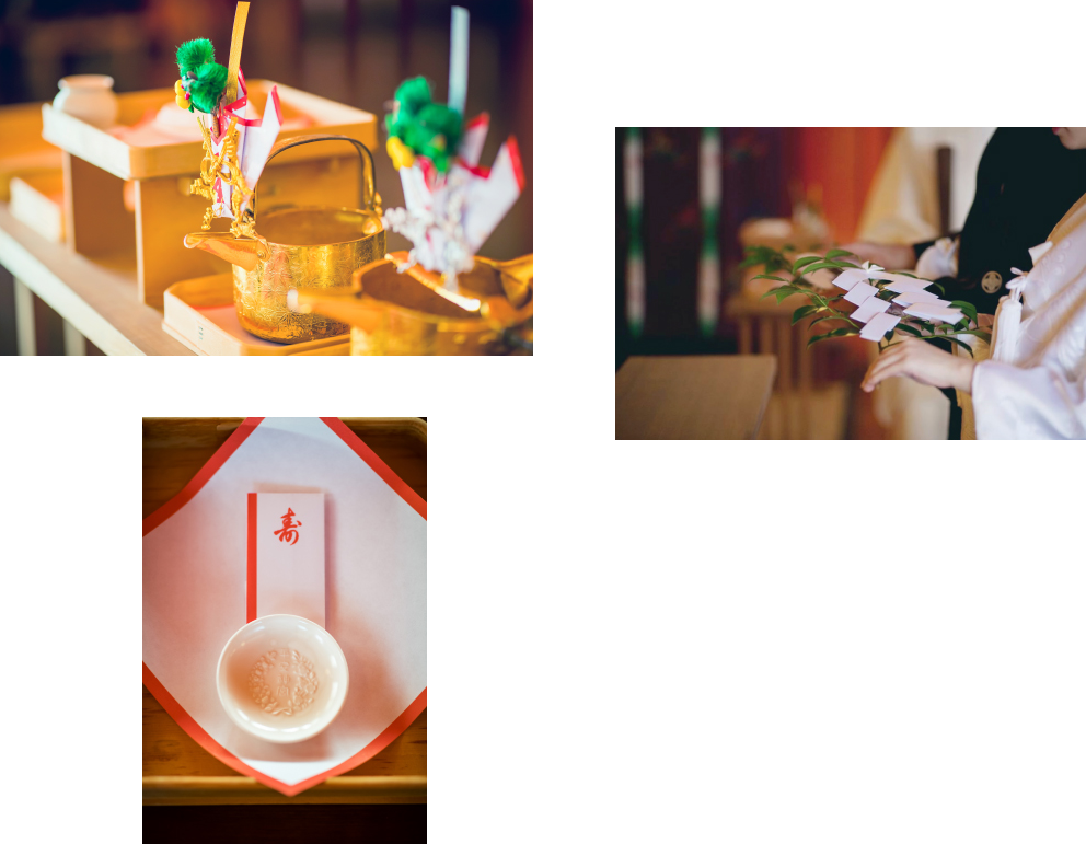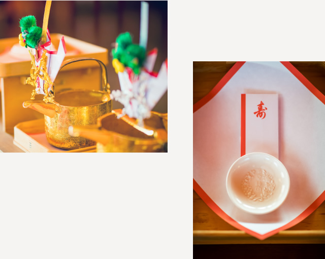 雅楽の調べが響きわたる神聖な空間。三献の儀で、夫婦の契りを結びます。