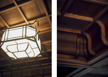 見上げれば、格式高い折上げ格天井。日本古来の建築技法が、上質な空間を創りあげています。